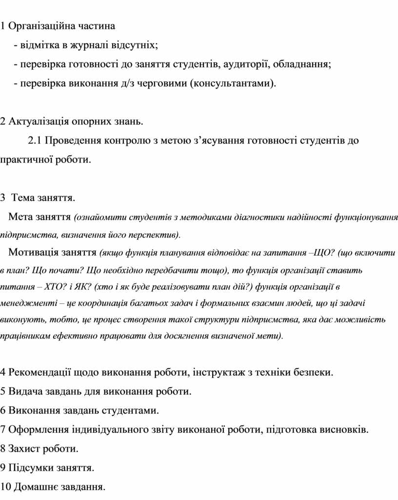 Мотивація заняття (якщо функція планування відповідає на запитання –ЩО? (що включити в план? Що почати? Що необхідно передбачити тощо), то функція організації ставить питання – ХТО? і ЯК? (хто і як буде реалізовувати план дій?) функція організації в менеджменті – це координація багатьох задач і формальних взаємин людей, що ці задачі виконують, тобто, це процес створення такої структури підприємства, яка дає можливість працівникам ефективно працювати для досягнення визначеної мети).