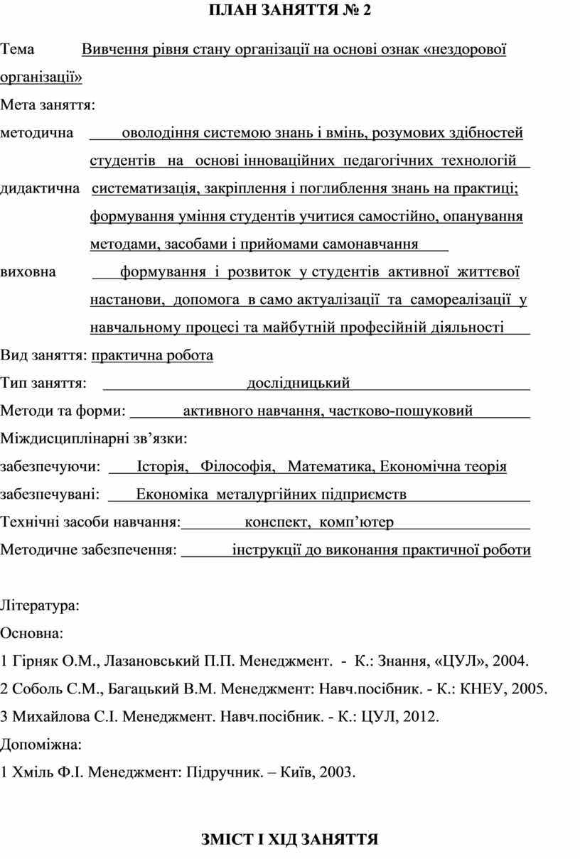 Тема Вивчення рівня стану організації на основі ознак «нездорової організації»