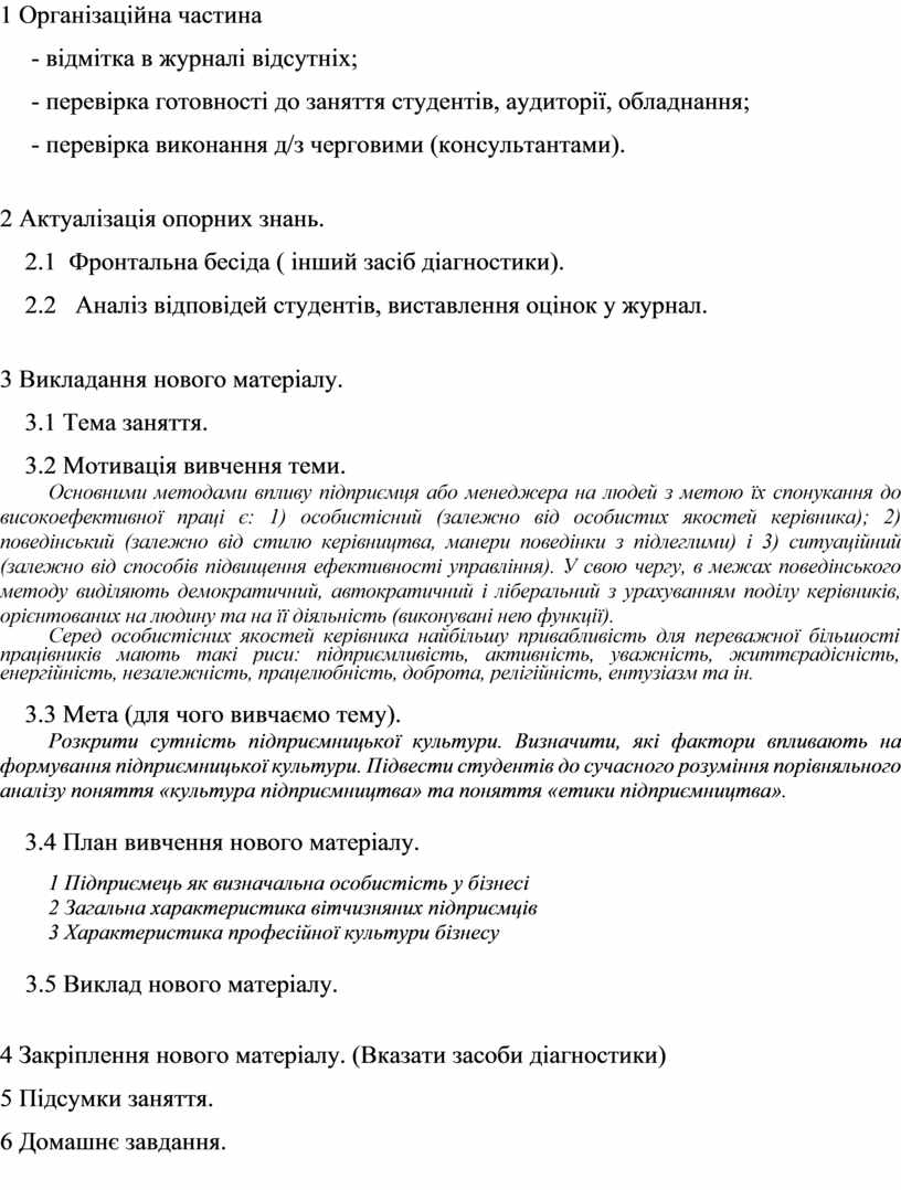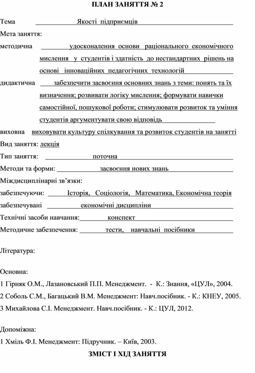 ПЛАН ЗАНЯТТЯ № 2