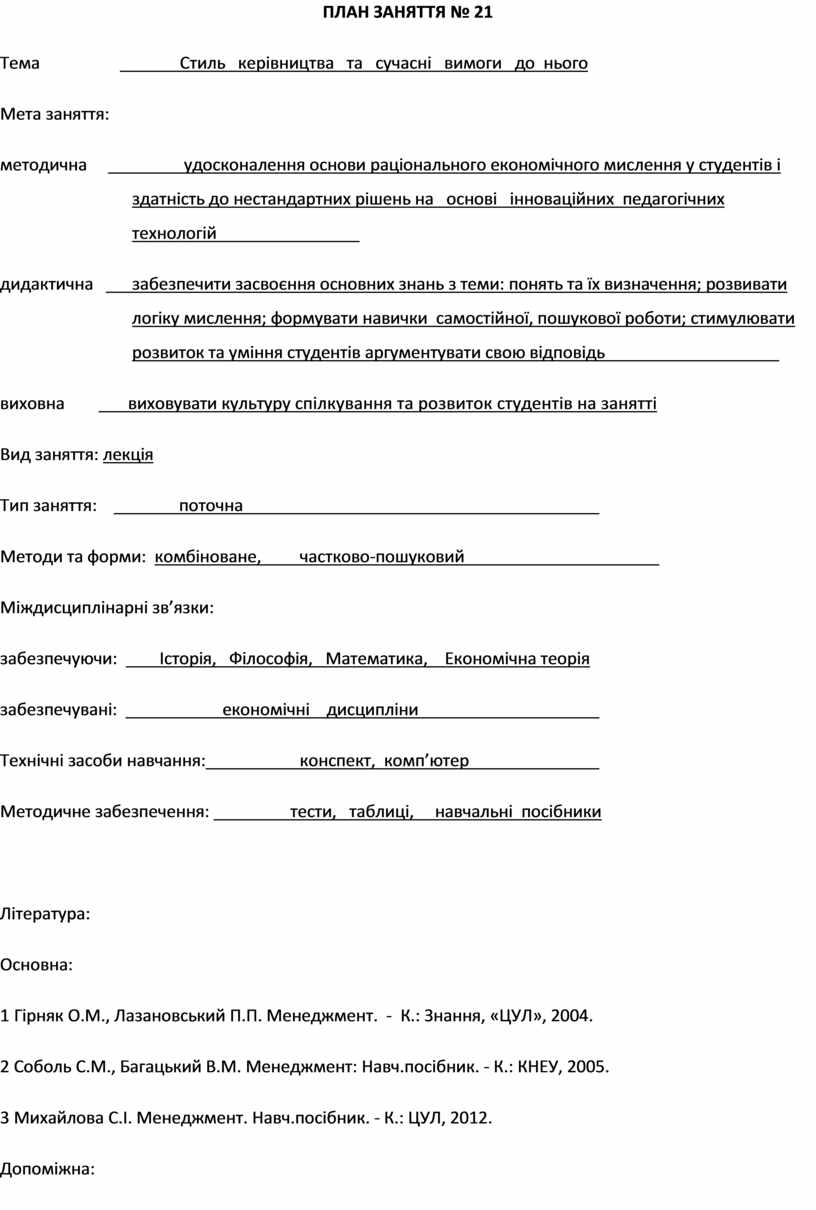 1 Гірняк О.М., Лазановський П.П. Менеджмент. - К.: Знання, «ЦУЛ», 2004.