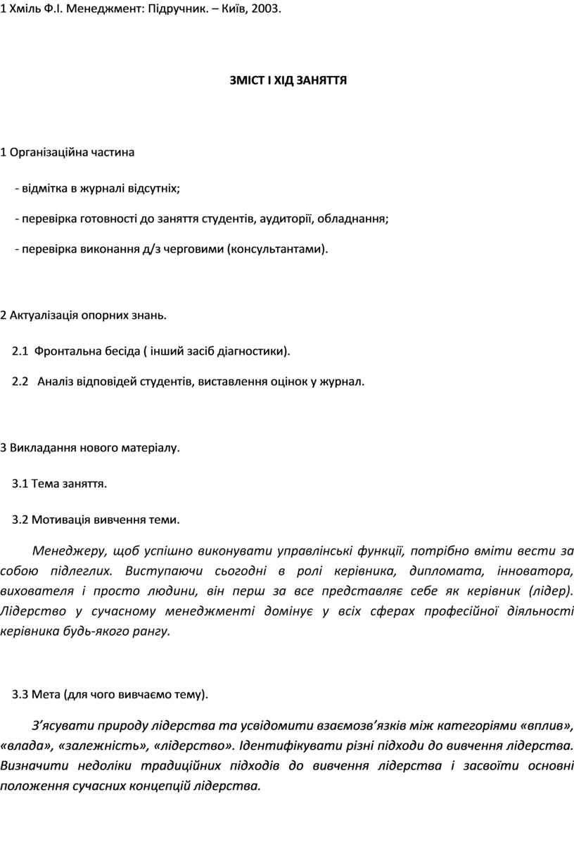 1 Хміль Ф.І. Менеджмент: Підручник. – Київ, 2003.