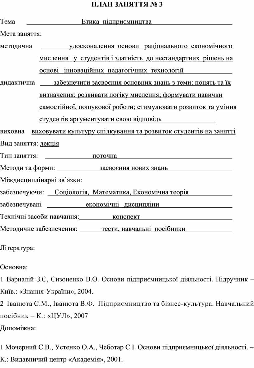 2 Іванюта С.М., Іванюта В.Ф. Підприємництво та бізнес-культура. Навчальний посібник – К.: «ЦУЛ», 2007