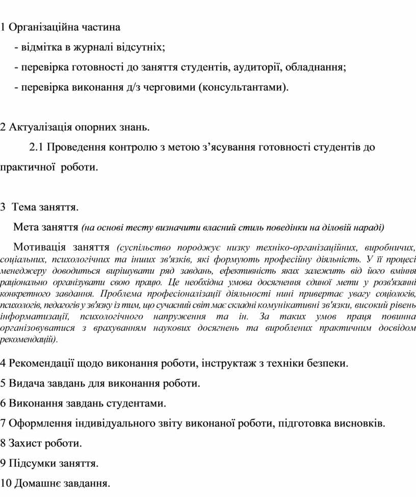 Мотивація заняття (суспільство породжує низку техніко-організаційних, виробничих, соціальних, психологічних та інших зв'язків, які формують професійну діяльність. У її процесі менеджеру доводиться вирішувати ряд завдань, ефективність яких залежить від його вміння раціонально організувати свою працю. Це необхідна умова досягнення єдиної мети у розв'язанні конкретного завдання. Проблема професіоналізації діяльності нині привертає увагу соціологів, психологів, педагогів у зв'язку із тим, що сучасний світ має складні комунікативні зв'язки, високий рівень інформатизації, психологічного напруження та ін. За таких умов праця повинна організовуватися з врахуванням наукових досягнень та вироблених практичним досвідом рекомендацій).