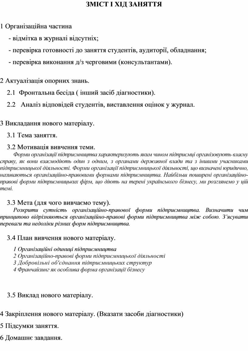 ЗМІСТ І ХІД ЗАНЯТТЯ