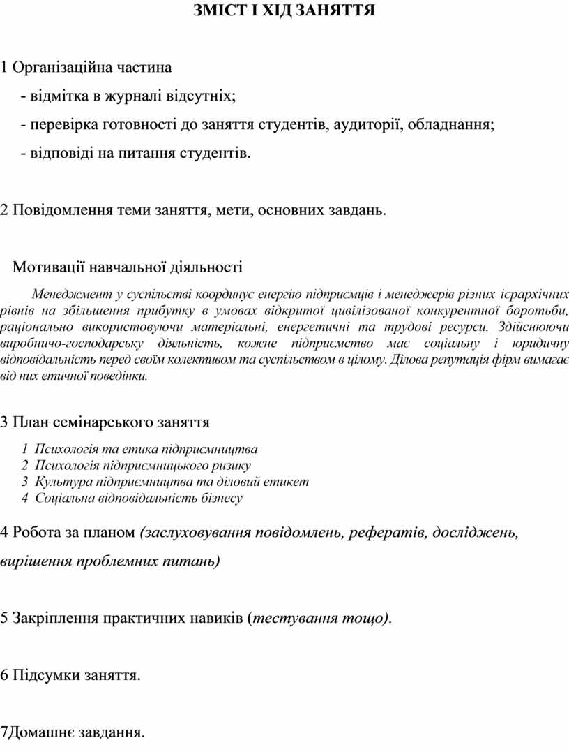 ЗМІСТ І ХІД ЗАНЯТТЯ