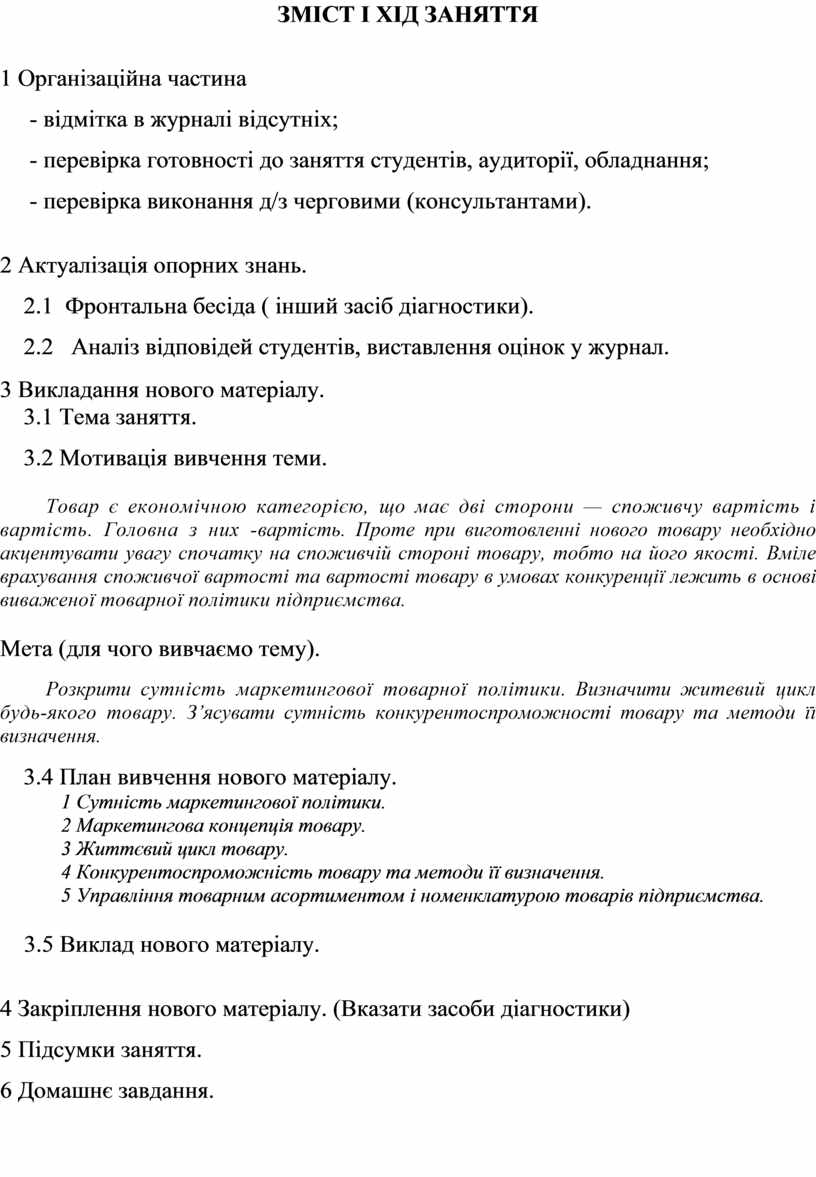ЗМІСТ І ХІД ЗАНЯТТЯ
