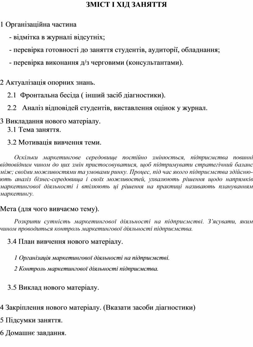 ЗМІСТ І ХІД ЗАНЯТТЯ