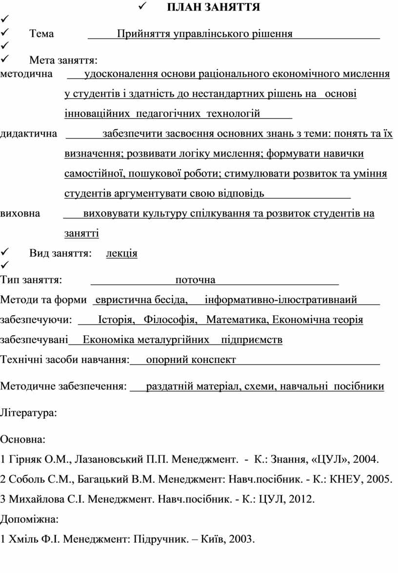 1 Гірняк О.М., Лазановський П.П. Менеджмент. - К.: Знання, «ЦУЛ», 2004.