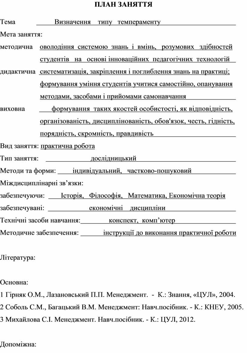 Мета заняття (вивчення індивідуально-психологічних характеристик (темпераменту) особливості, діагностування властивостей темпераменту).