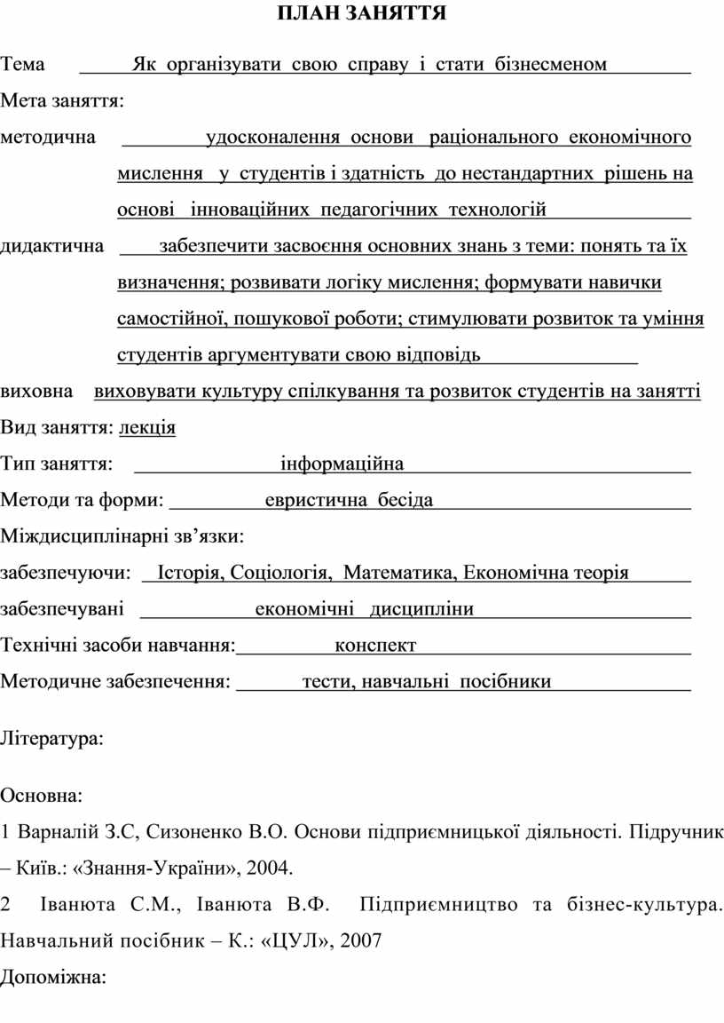 2 Іванюта С.М., Іванюта В.Ф. Підприємництво та бізнес-культура. Навчальний посібник – К.: «ЦУЛ», 2007