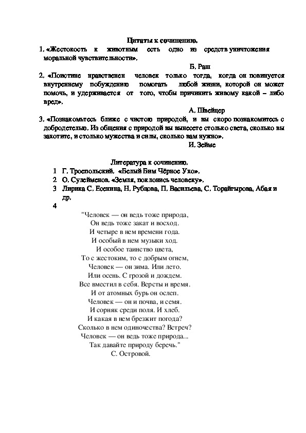 Так давайте природу беречь!» (С. Островой)Цитаты к сочинению.