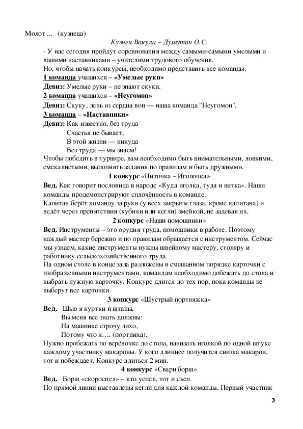 Внеклассное мероприятие по труду «ТРУДОВОЙ ТУРНИР»