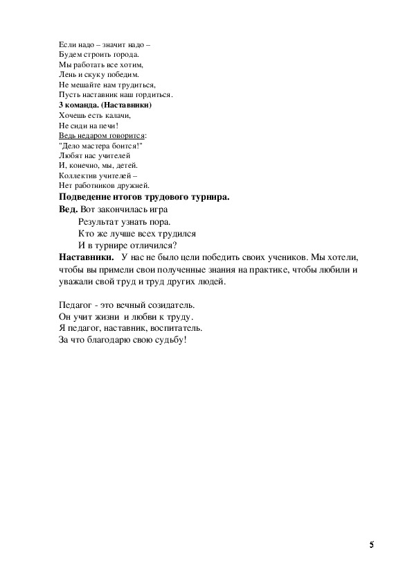 Наш сегодняшний турнир посвящен труду. Если труд приносит человеку
