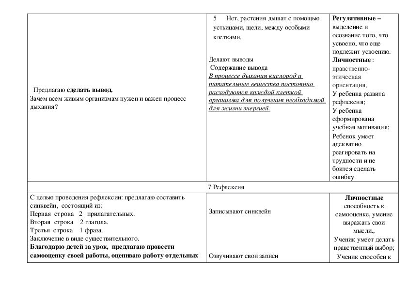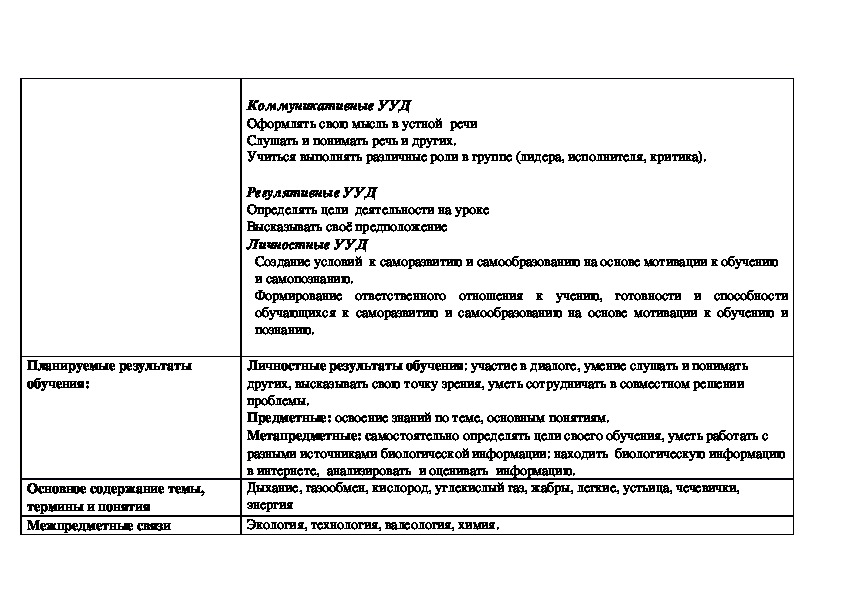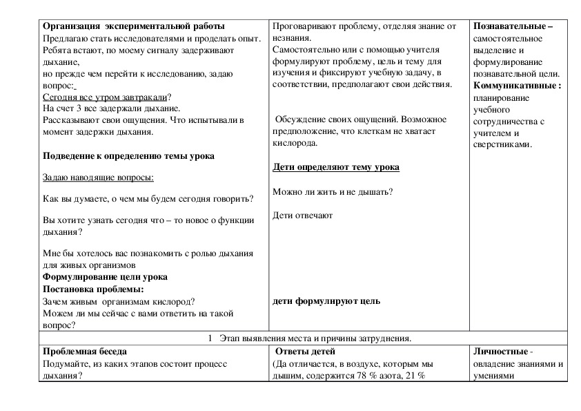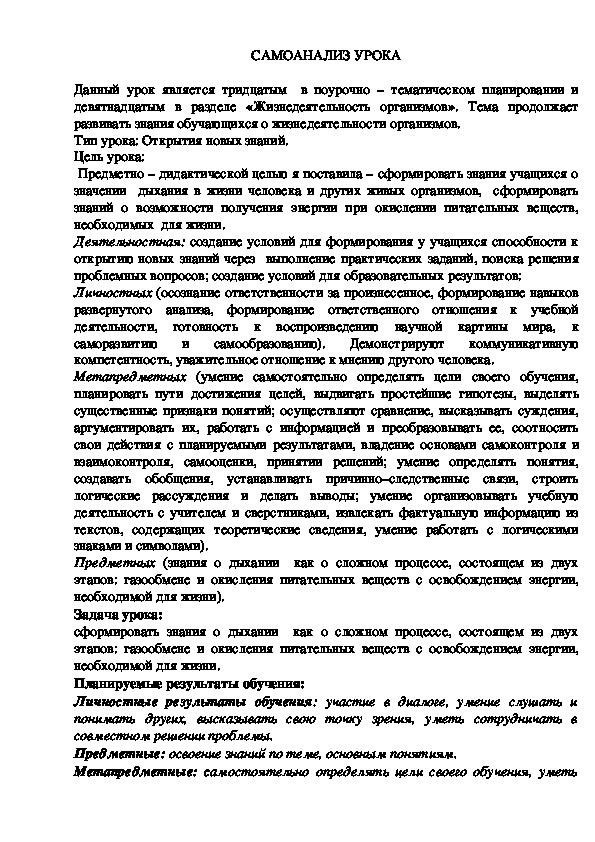 Предметных (знания о дыхании как о сложном процессе, состоящем из двух