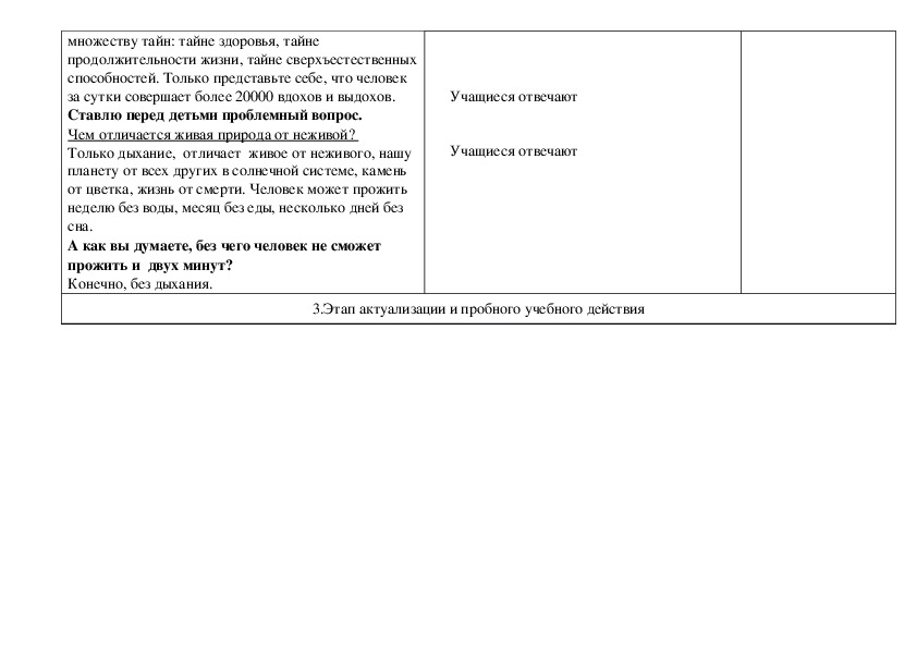 Познакомить учащихся со значением дыхания в жизни человека и других живых