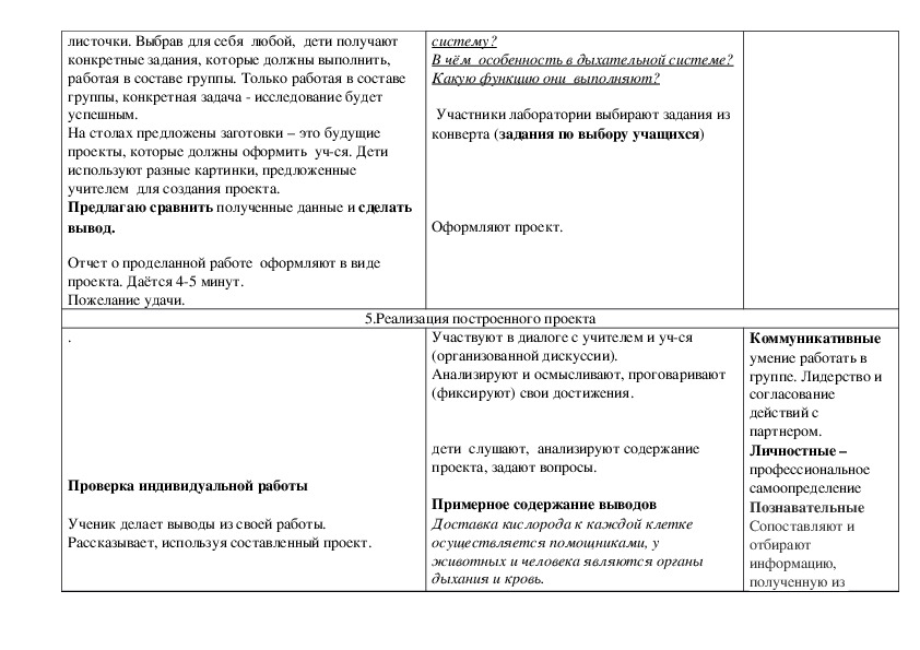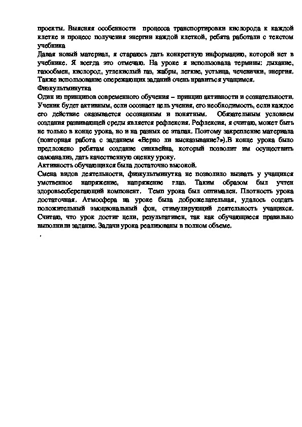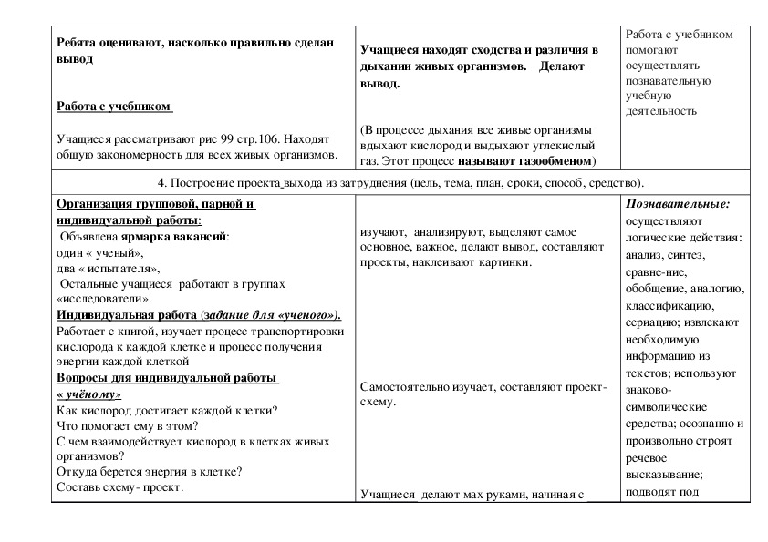 решение проблемы. Ребята работали в паре, в группе, индивидуально, выполнялипроекты. Выясняя особенности процесса транспортировки кислорода к каждой