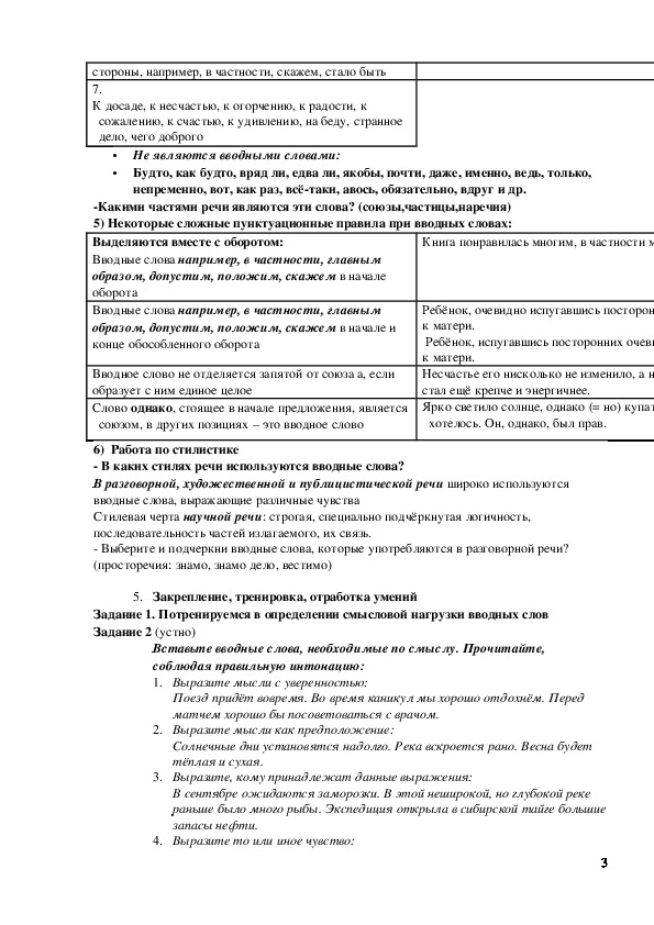 выразительно и правильно читать предложения, используя интонацию вводности.