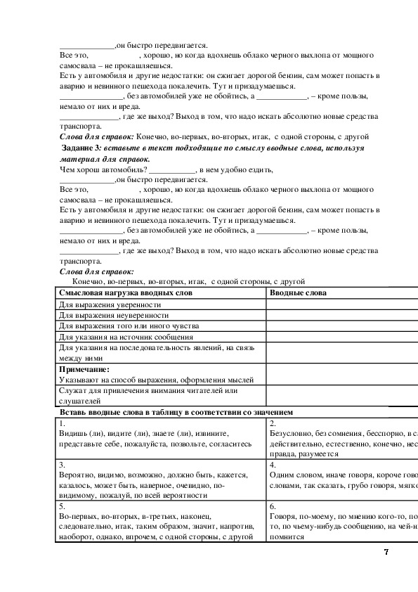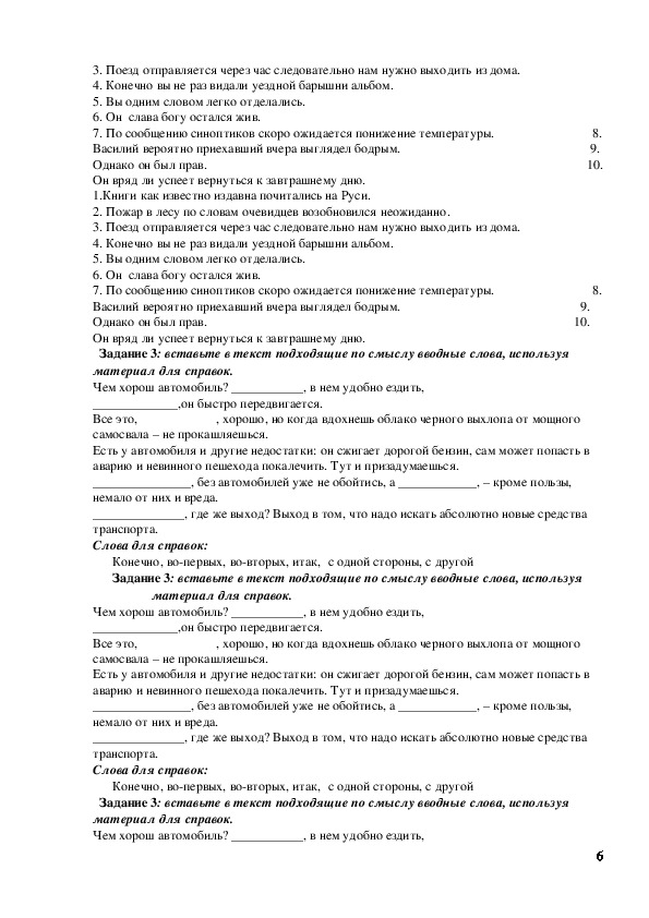 Задание 3: вставьте в текст подходящие по смыслу вводные слова, используя
