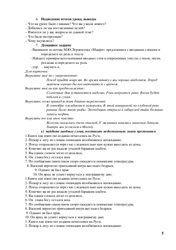 Выпишите из поэмы М.Ю.Лермонтова «Мцыри» предложения с вводными словами и
