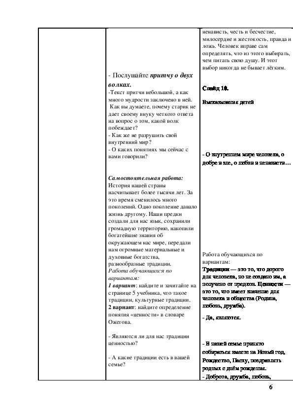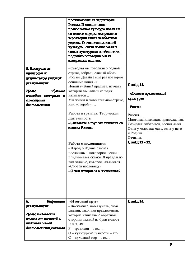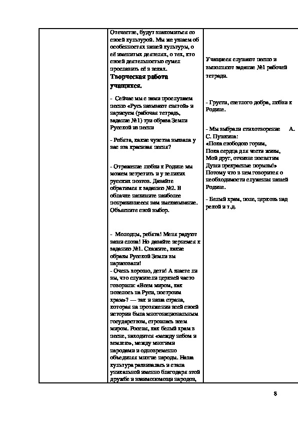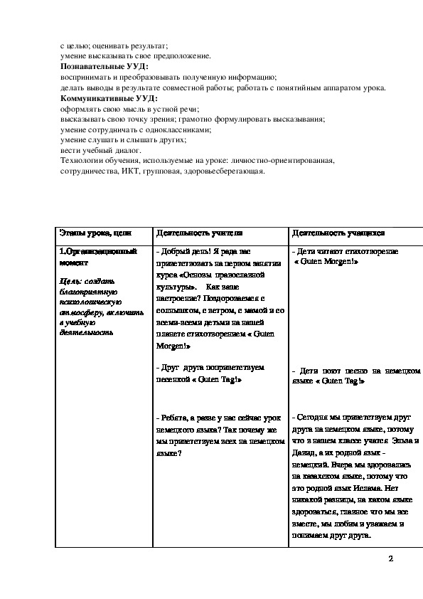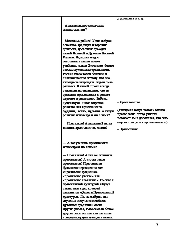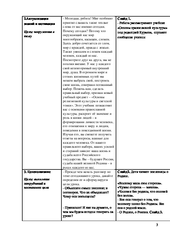 План-конспект урока по ОПК в 4 классе.