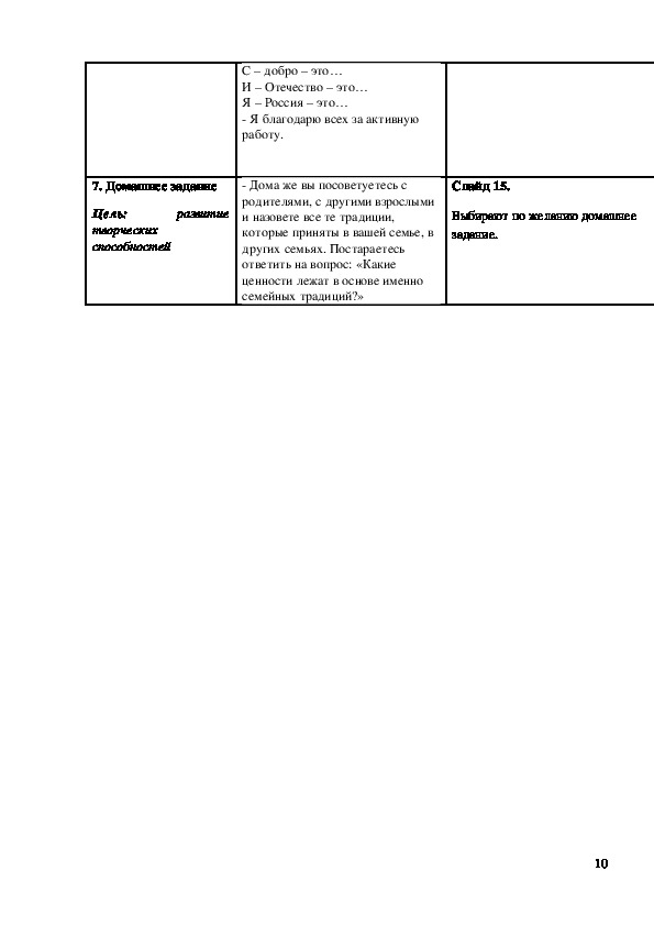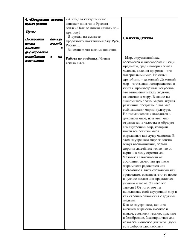 - познакомить с понятиями: Родина, духовный мир человека, культурные традиции, определить их значение в жизни человека и историче-ском развитии нашей Родины.