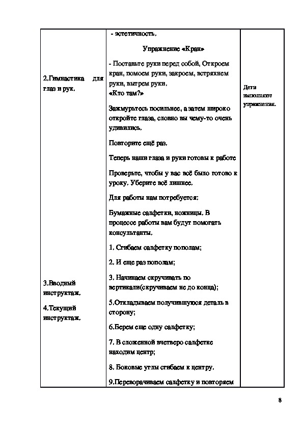 - формировать умение определять алгоритм выполнения действий и приемов, их последовательность при изготовлении композиции из бумажных салфеток.