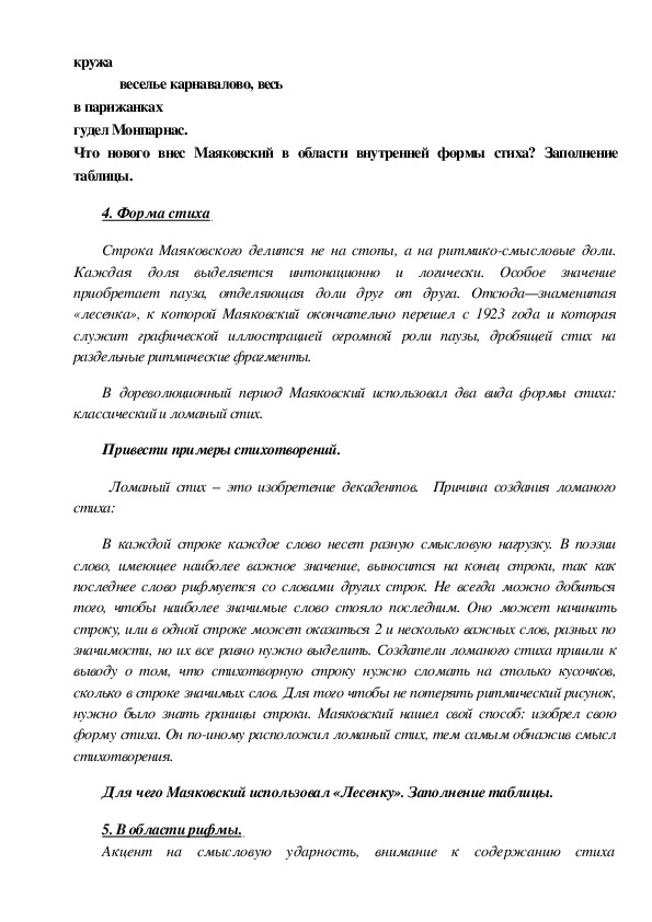 11 3. Отличались ли по форме стихи Маяковского от стихов других поэтов?