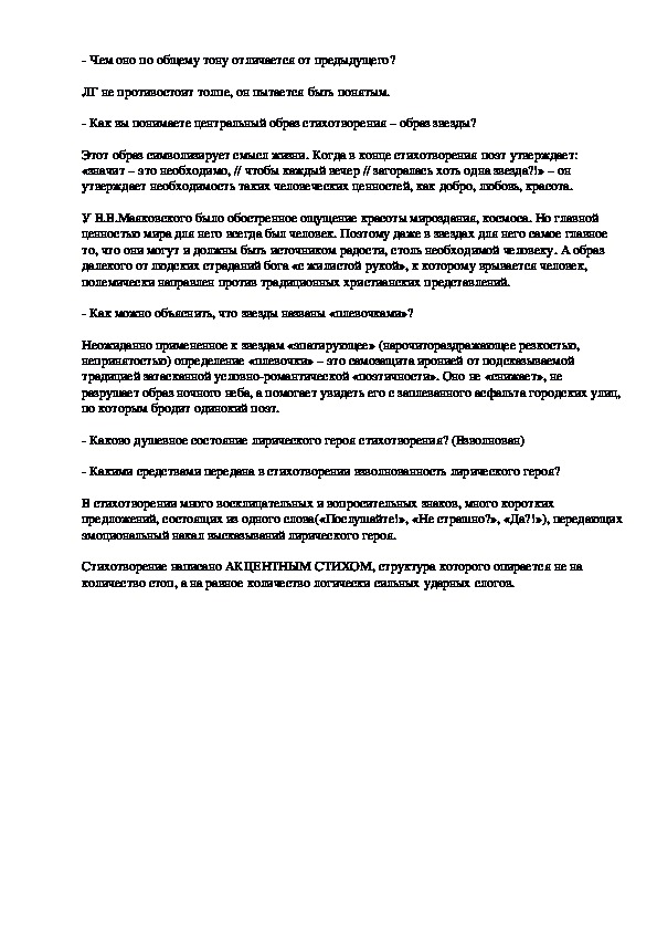 Как вы понимаете центральный образ стихотворения – образ звезды?