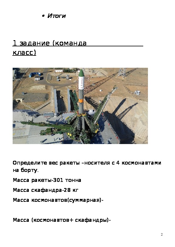 Определите вес ракеты –носителя с 4 космонавтами