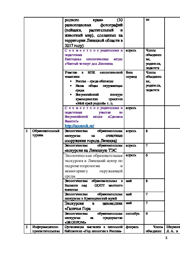 План работы общественного экологического объединения «Муравей» 2016-2017 год Год Экологии в России.