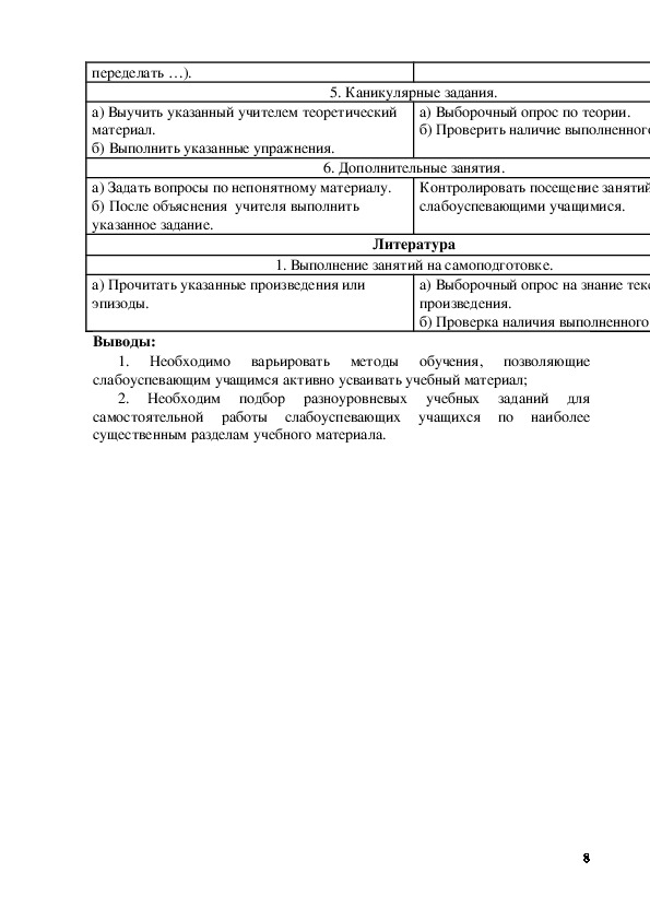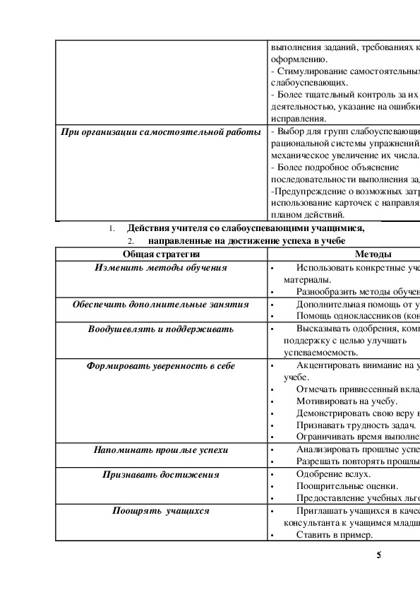 4) изучение особенностей слабоуспевающих учащихся, причин их