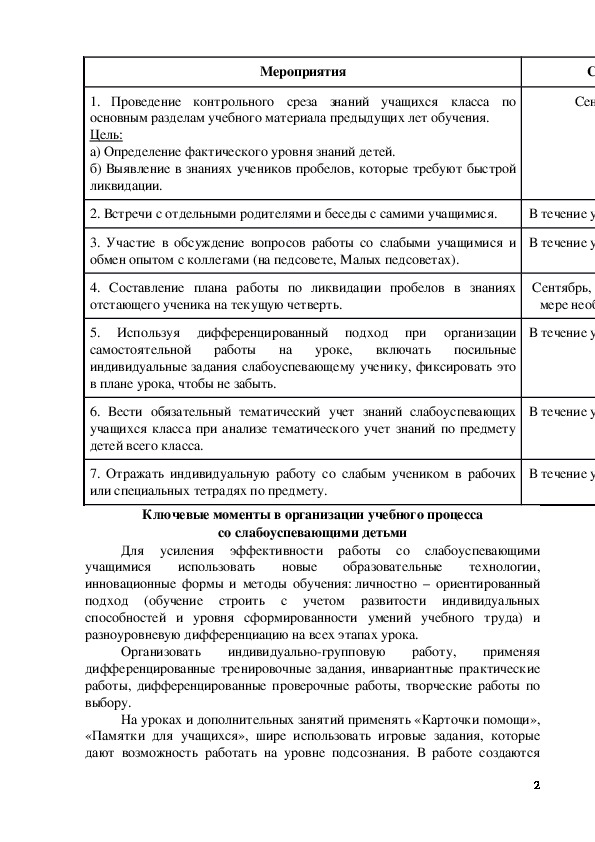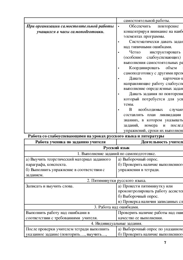7. Отражать индивидуальную работу со слабым учеником в рабочих