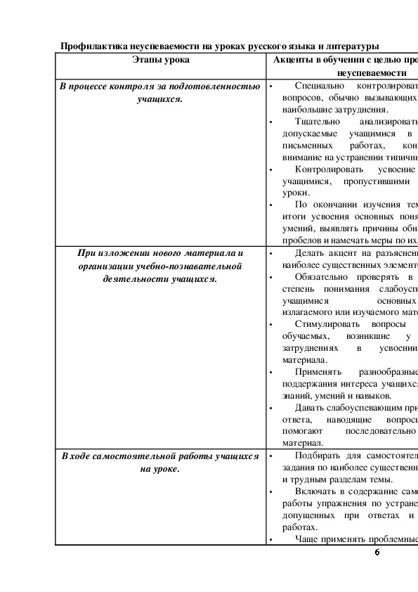 6. Вести обязательный тематический учет знаний слабоуспевающих