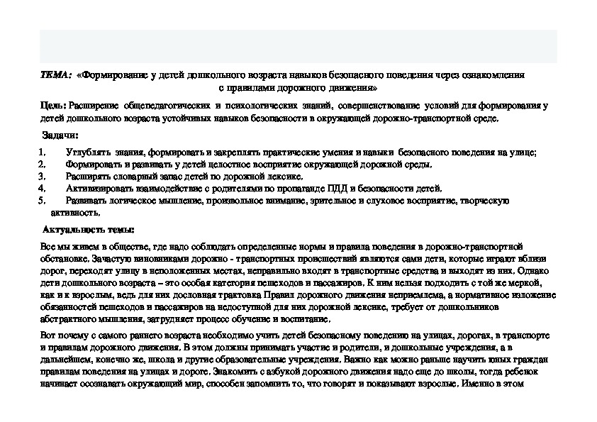 начинает осознавать окружающий мир, способен запомнить то, что говорят и показывают взрослые. Именно в этомвозрасте дети должны получить первые сведения о правилах дорожного движения. Эта проблема представляется