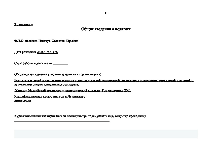 Ханты – Мансийский технолого – педагогический колледж. Год окончания 2011
