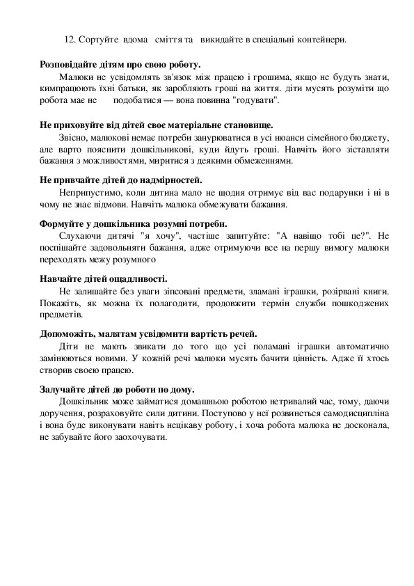 принесете і викинете вдома, а не на вулиці.12. Сортуйте вдома сміття та викидайте в спеціальні контейнери.