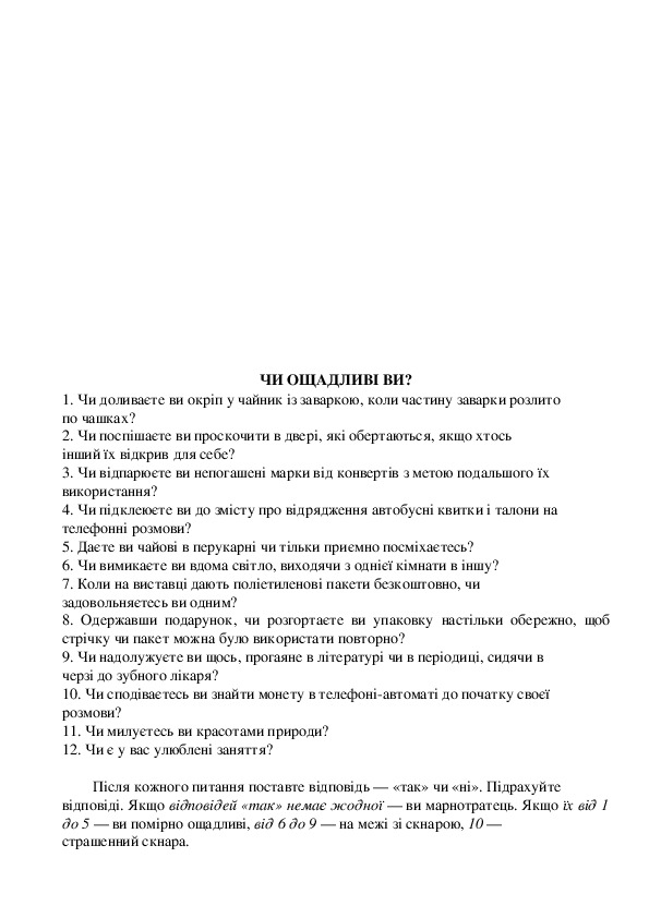 дослухаєтесь.ЧИ ОЩАДЛИВІ ВИ?
