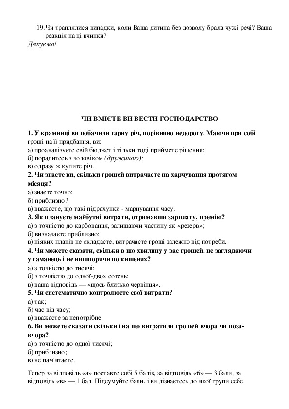 відповідь «в» — 1 бал. Підсумуйте бали, і ви дізнаєтесь до якої групи себевіднести.