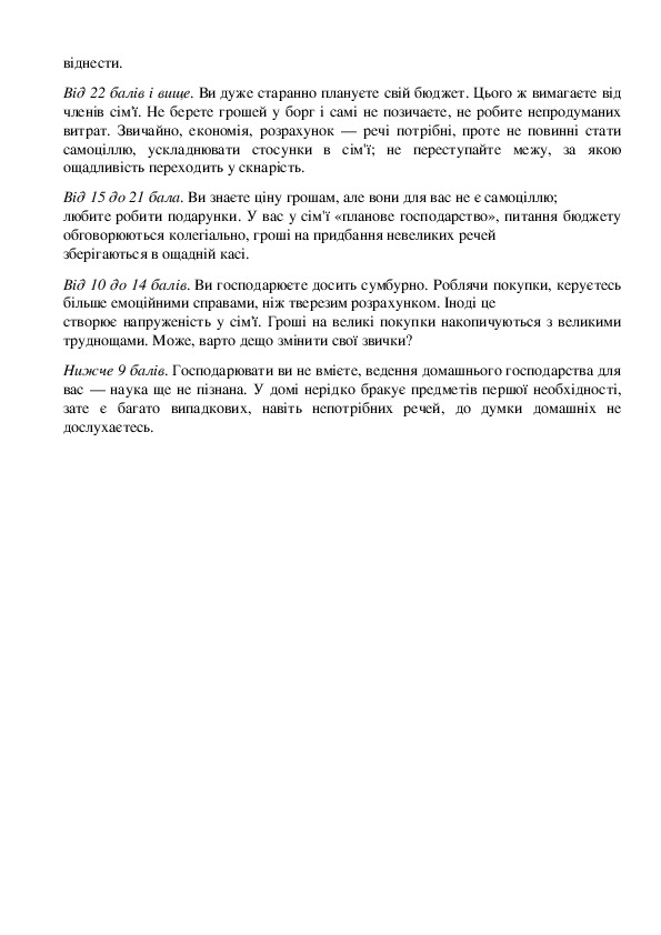 Від 22 балів і вище. Ви дуже старанно плануєте свій бюджет. Цього ж вимагаєте від