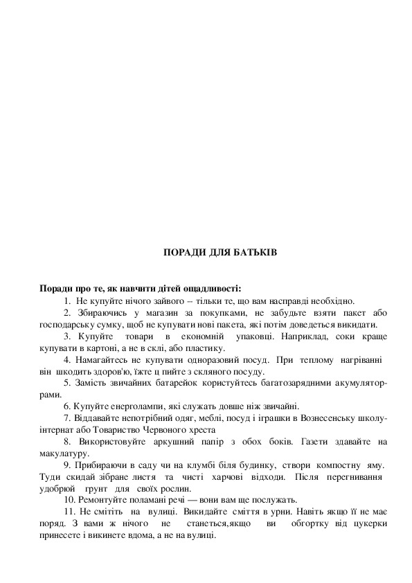 7. Віддавайте непотрібний одяг, меблі, посуд і іграшки в Вознесенську школу