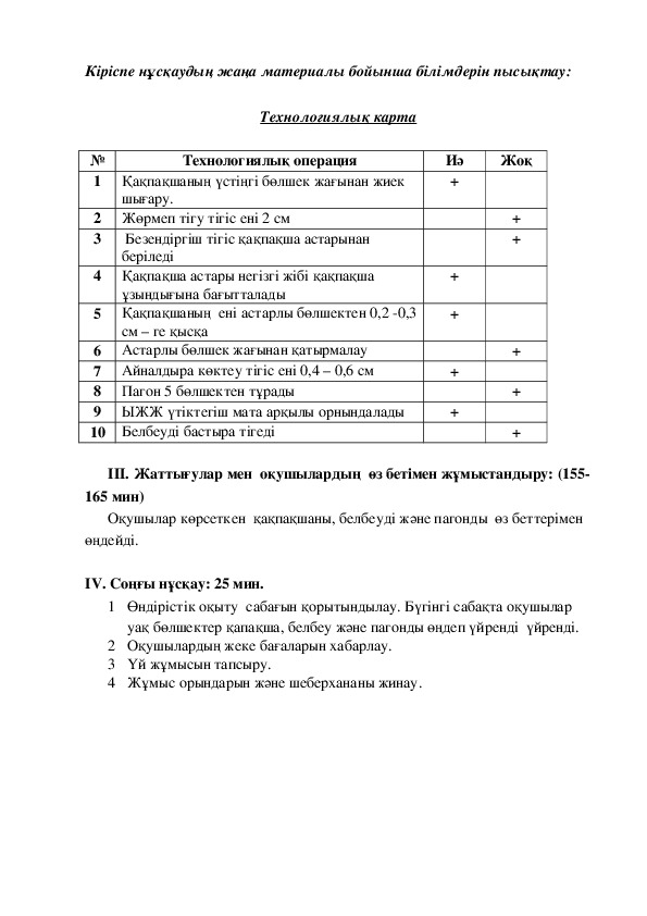тігіс ені 0,5 см – ге жөрмеп тігу. Көктеу жібін суыру. Бұрыштарын қию 0,2см тігіске жеткізбей. Тігісті айра үтіктеп. Оң жағына айналдырады