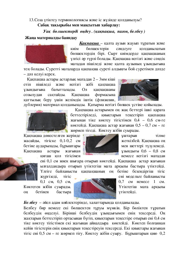 Уақ бөлшектердің қапақшан, пагон, белбеудің өңделу тәсілдерін көрсету.