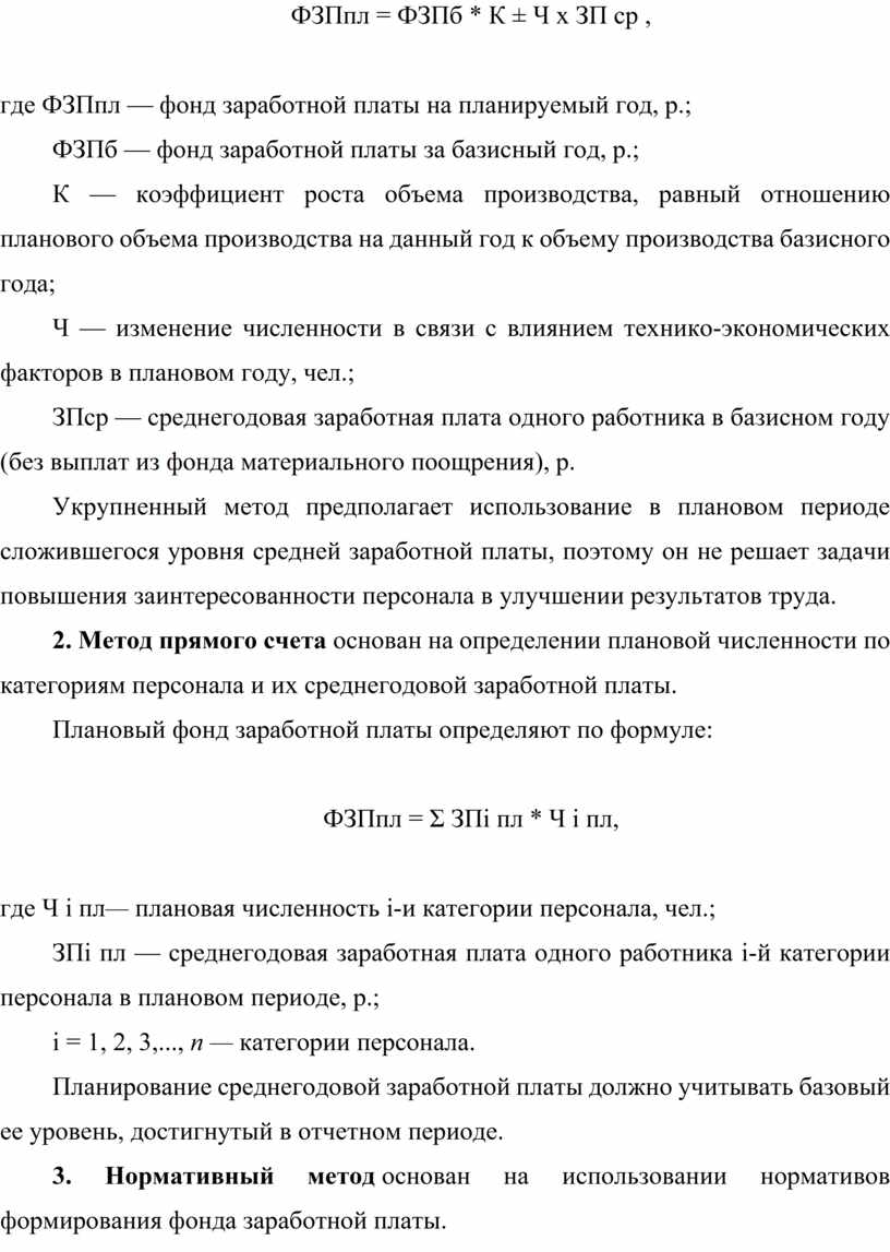 Для расчета планового фонда заработной платы применяются следующие методы: