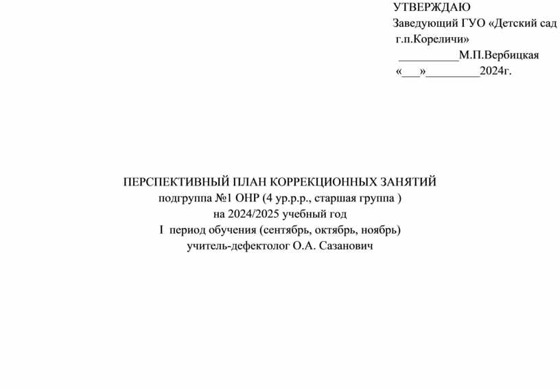 ПЕРСПЕКТИВНЫЙ ПЛАН КОРРЕКЦИОННЫХ