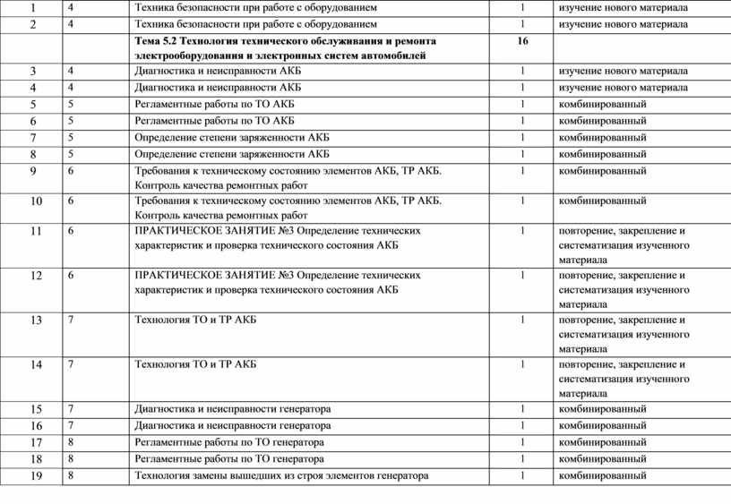 Тема 5.2 Технология технического обслуживания и ремонта электрооборудования и электронных систем автомобилей |