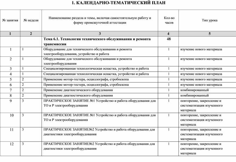 1. КАЛЕНДАРНО-ТЕМАТИЧЕСКИЙ ПЛАН