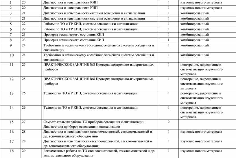 Технология ТО и Р КИП, системы освещения и сигнализации |