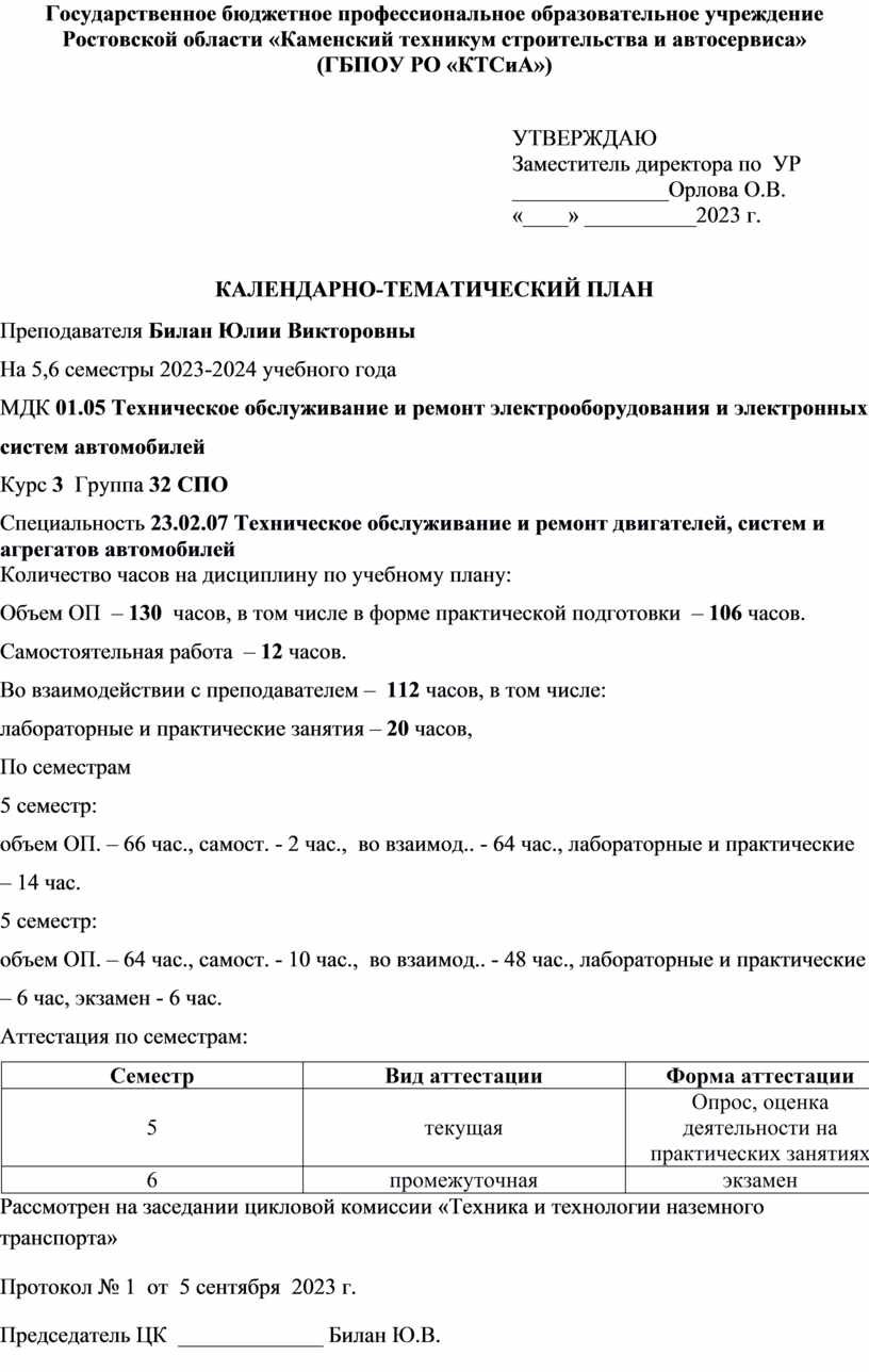 УТВЕРЖДАЮ Заместитель директора по УР ______________Орлова О.В. «____» __________2023 г. |