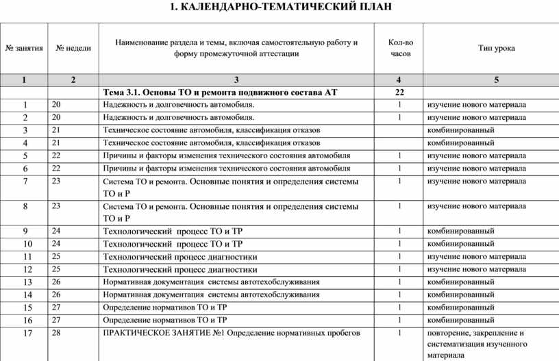 1. КАЛЕНДАРНО-ТЕМАТИЧЕСКИЙ ПЛАН