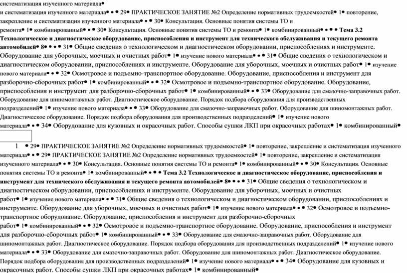 Тема 3.2 Технологическое и диагностическое оборудование, приспособления и инструмент для технического обслуживания и текущего ремонта автомобилей |